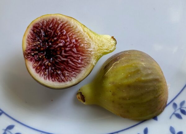 Grand arbre, donnant des figues jaune gris marron en août.