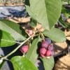 Amélanchier Sleyt , à port compact, convient pour la culture en pot. Fruits plus grands et sucrées que le type, mûr en juin , plein d’anti-oxydants.