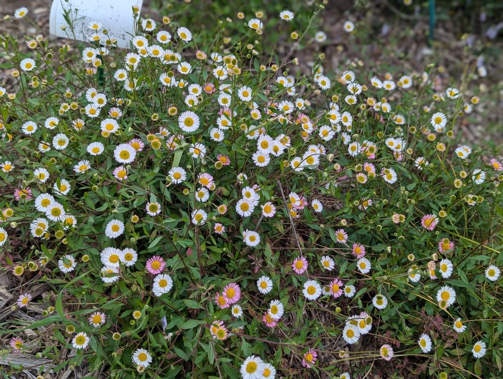 Érigéron, appelé Vergerette. Profusion de pâquerettes de mai à novembre.