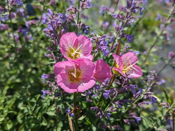 L’ Oenothera berlandieri est une vivace avec pleins de fleurs champêtres, rose. Plante indestructible!